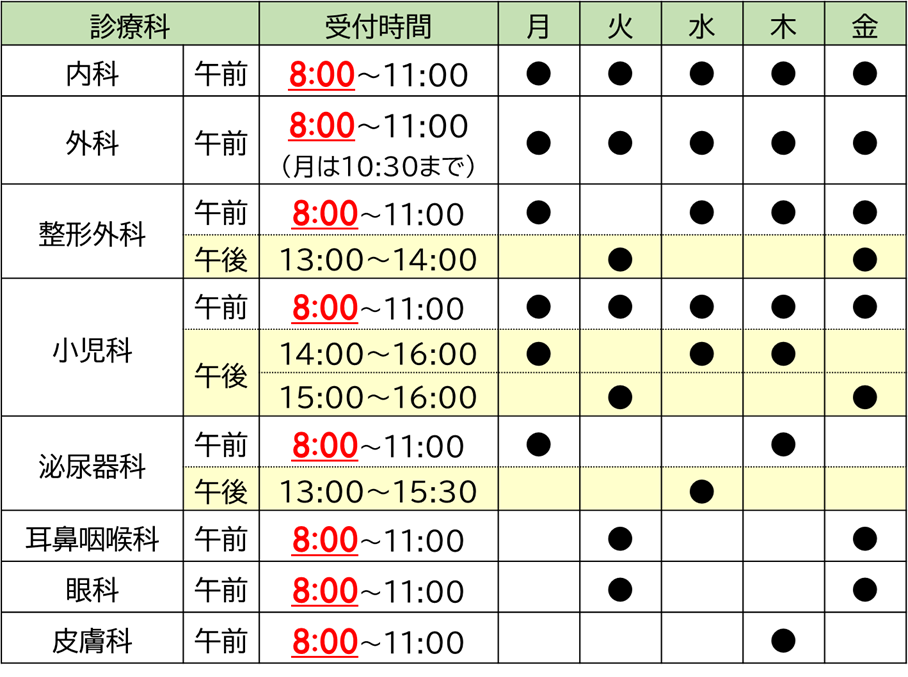 再来受付機および新患・再来受付窓口ともに午前8時からに変更