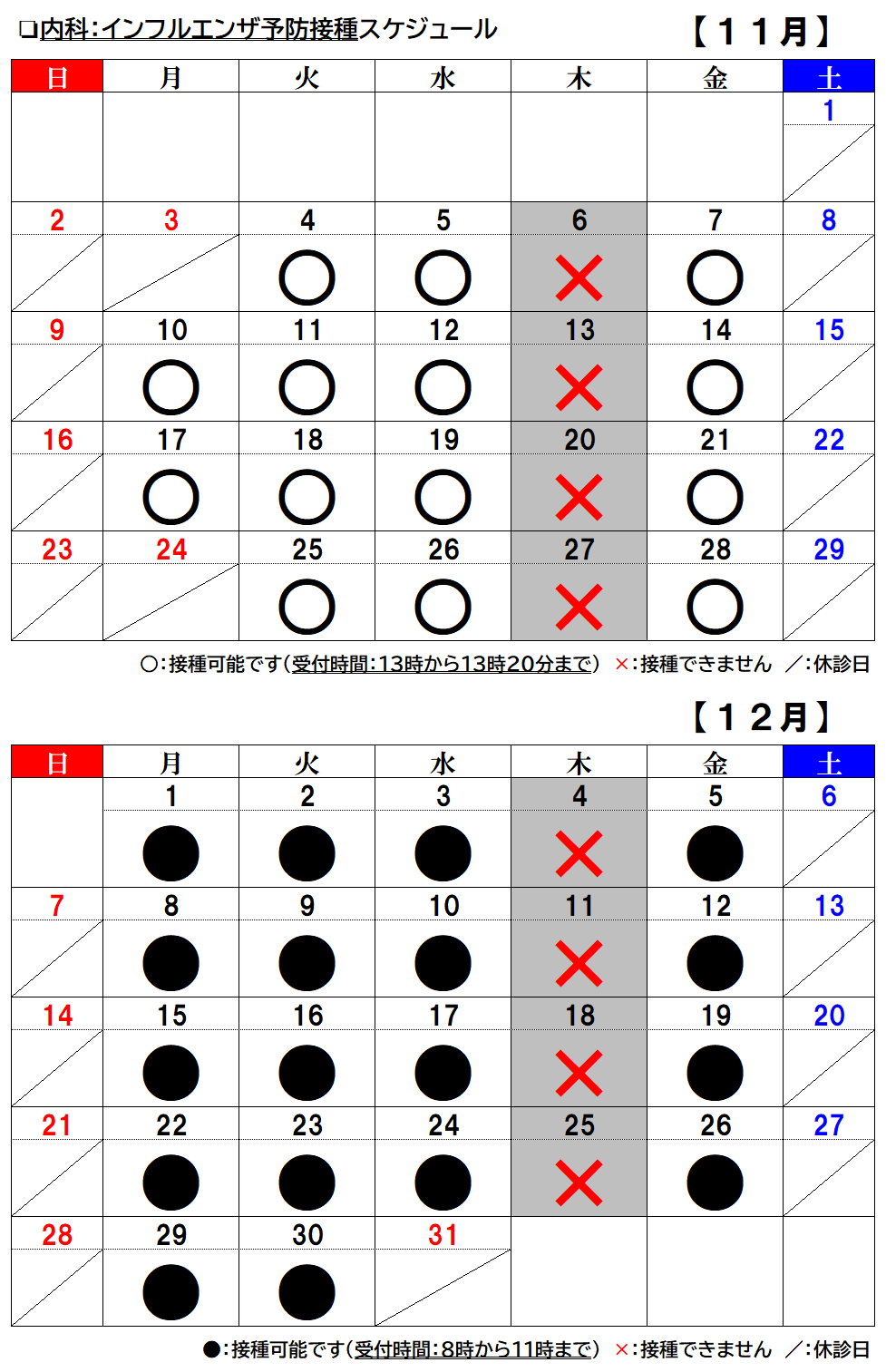 当院では、令和7年度の内科でのインフルエンザ予防接種を11月4日(火)から開始いたします。